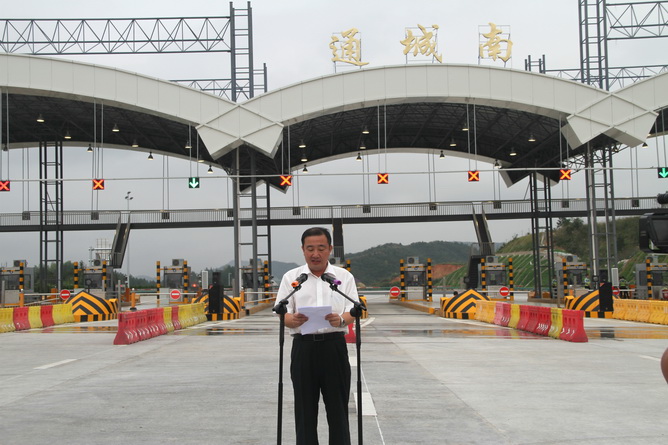 梁卓仁在儀式上致辭。他代表通界高速公路項(xiàng)目投資建設(shè)方,向高度重視和大力支持項(xiàng)目建設(shè)的當(dāng)?shù)攸h委政府、社會(huì)各界及沿線群眾表示感謝和敬意,向項(xiàng)目設(shè)計(jì)、監(jiān)理人員及廣大建設(shè)者表示慰問。梁卓仁表示,咸寧四航公司將做好項(xiàng)目運(yùn)營階段的各項(xiàng)工作,努力提供優(yōu)質(zhì)、高效、便捷的服務(wù),使通界高速成為便利之路、致富之路、和諧之路,為有效促進(jìn)武漢城市圈和鄂東南區(qū)域經(jīng)濟(jì)社會(huì)發(fā)展貢獻(xiàn)力量。
