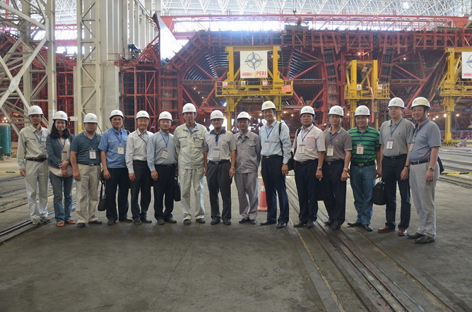 考察團一行實地考察了牛頭島沉管預制廠、西人工島等施工現(xiàn)場,了解了工程建設情況,聽取了關于工程規(guī)模、施工進展、關鍵工藝、現(xiàn)場管理等情況的介紹,并與項目管理人員進行了交流。