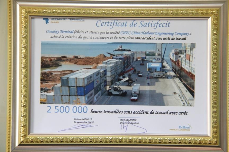 11月17日,幾內(nèi)亞共和國(guó)總統(tǒng)阿爾法•孔戴出席中國(guó)港灣總承包、四航局二公司承建的科納克里港集裝箱碼頭擴(kuò)建項(xiàng)目竣工儀式,并為項(xiàng)目落成剪彩。幾內(nèi)亞總理福法納、國(guó)民議會(huì)議長(zhǎng)昆迪亞諾,中國(guó)駐幾內(nèi)亞大使卞建強(qiáng)、經(jīng)濟(jì)商務(wù)參贊高鐵峰,法國(guó)駐幾內(nèi)亞大使伯特蘭、業(yè)主法國(guó)博洛萊集團(tuán)副主席安格及40位幾內(nèi)亞部長(zhǎng)級(jí)官員等共400余人出席。