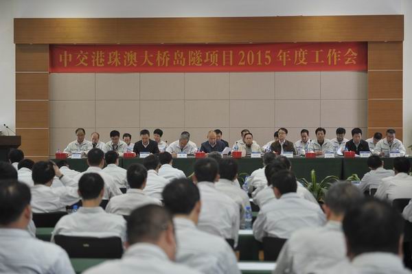 1月8日,中交港珠澳大橋島隧項(xiàng)目總部召開(kāi)2015年度工作會(huì)。中國(guó)交建副總裁陳云、王海懷,港珠澳大橋管理局局長(zhǎng)朱永靈,島隧項(xiàng)目總經(jīng)理林鳴、黨委書記劉先鵬,四航局副總經(jīng)理羅寬榮等出席。