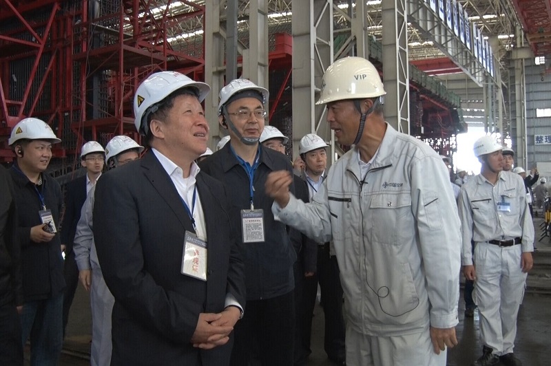 在桂山沉管預(yù)制廠,曹健林一行察看了大橋“超級(jí)沉管”生產(chǎn)流程和已預(yù)制完工的沉管、管內(nèi)小構(gòu)件實(shí)體,聽取了現(xiàn)場(chǎng)人員關(guān)于深埋沉管“半剛性”結(jié)構(gòu)設(shè)計(jì)、超大管節(jié)質(zhì)量控制措施、深水深槽沉管安裝等科技創(chuàng)新成果的匯報(bào)。曹健林一行還到西人工島、沉管隧道等施工現(xiàn)場(chǎng)考察,并深入沉管隧道內(nèi)詳細(xì)察看了沉管防滲控制、端頭定位等情況。