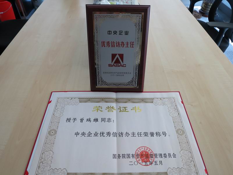 四航局曾瑞雄同志獲評(píng)"中央企業(yè)優(yōu)秀信訪辦主任"