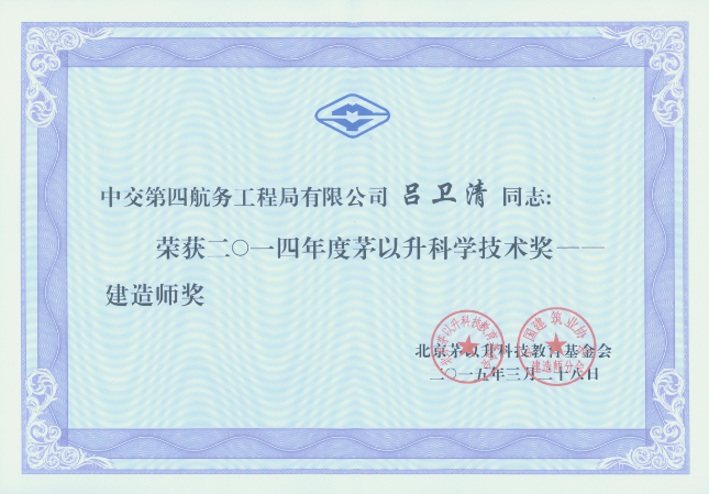 四航局呂衛(wèi)清榮獲"2014年度茅以升科學技術獎--建造師獎"