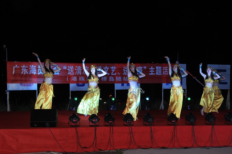省海員工會職工業(yè)余藝術團、珠海市總工會文工團為現(xiàn)場700余名建設者帶來一場精彩的文藝晚會,晚會包括舞蹈、歌曲、魔術、樂器演奏等內容。觀眾還作為特邀嘉賓,參與了現(xiàn)場演唱和魔術表演,贏得工友們連聲喝彩。