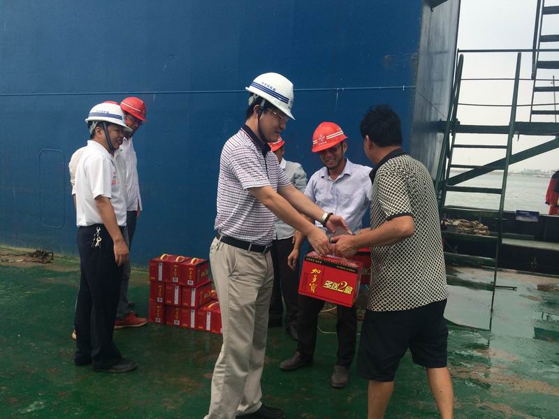 四航局五公司送清涼到“四航防城港號”船組