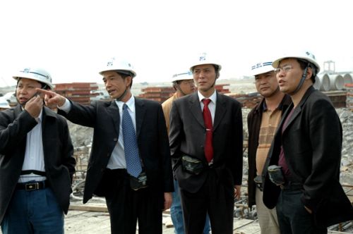 該工程合同工期三年半,需施打3425根大直徑鋼管樁和大量的樁內(nèi)嵌巖、錨錠施工,要完成碼頭基槽、駁岸區(qū)及港池航道挖泥2000多萬立方米,施工技術(shù)標準以英國標準為主。項目部按照集團和局領(lǐng)導安全、優(yōu)質(zhì)、高效地按期完成施工任務(wù)的要求,制訂了"講誠信、講和諧、創(chuàng)效益、創(chuàng)品牌"的工作目標和措施,高效配置資源,嚴密組織,精心施工。自去年3月1日開工至今,完成了三分之一的鋼管樁施打、四分之一的挖泥施工和400米碼頭縱橫梁澆注,其它工序也按計劃進行,形成了1000多米的流水作業(yè)線,完成施工產(chǎn)值5.8億元?,F(xiàn)在,項目部全體員工士氣高昂,決心為企業(yè)發(fā)展做出更大貢獻!圖為副局長羅寬榮、中港副總經(jīng)理莫文賀到現(xiàn)場慰問員工、指導工作。
