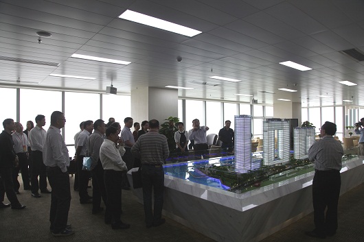 視察組一行參觀了廣州之窗總部大廈園林環(huán)境、28層營銷展示層,認為大廈環(huán)境優(yōu)美、綠色環(huán)保,體現(xiàn)了人文關(guān)懷;大廈的功能定位、發(fā)展模式獨具特色,融匯了歷史文化底蘊和國際級視野,展現(xiàn)了四航局良好的品牌形象。
