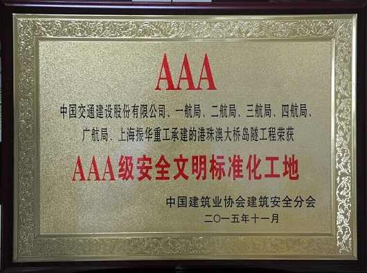 港珠澳大橋島隧工程榮獲2015年全國"AAA級(jí)安全文明標(biāo)準(zhǔn)化工地"