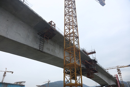 12月4日, 四航局珠海城際項目部負(fù)責(zé)施工的前山水道特大橋最大跨度連續(xù)梁澆筑完畢,標(biāo)志著該特大橋主橋順利合攏。