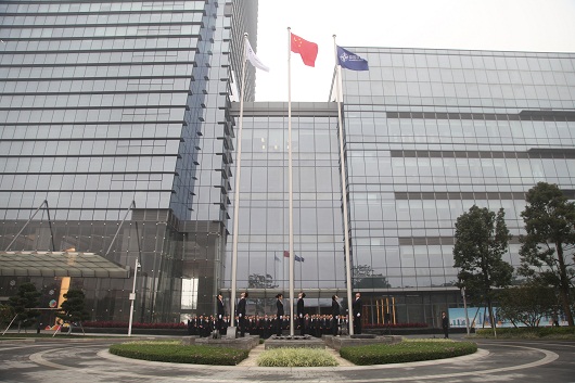 伴隨著《國歌》、《四航之歌》的鏗鏘旋律,五星紅旗和中國交建司旗在公司6名旗手護衛(wèi)下徐徐升起,本部全體員工肅立仰望,向五星紅旗和中國交建司旗行注目禮,自豪和神圣感油然而生。