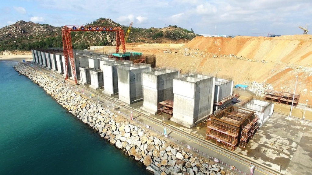 該工程合同工期501天,建設(shè)范圍包括1個(gè)重件碼頭、442.81米碼頭防波堤、巡邏艇碼頭、582.43米廠區(qū)西防波堤、港池航道疏浚與導(dǎo)助航標(biāo)志、重件碼頭與廠區(qū)道路連接段及碼頭附屬設(shè)施等。