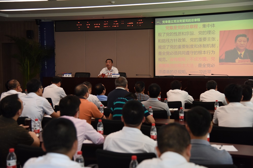 梁卓仁從黨章的地位和作用講述了黨章的歷史沿革,詳細(xì)講解了十八大黨章的新內(nèi)容,并就如何學(xué)及如何做提出了具體方法和要求。他指出,黨章是黨的理論與實(shí)踐的結(jié)晶,立黨治黨管黨的總章程,是黨的光輝歷史的見證,每一條都凝結(jié)著黨的建設(shè)的歷史經(jīng)驗(yàn)。他要求,通過“一個(gè)‘模范’、兩個(gè)‘結(jié)合’、三個(gè)‘深入’、四個(gè)‘深刻’、五個(gè)‘必須’、六個(gè)‘聯(lián)系’”練好學(xué)習(xí)黨章這個(gè)基本功,把握新思想新要求。他強(qiáng)調(diào),要從突出問題導(dǎo)向,整改解決問題,積極創(chuàng)先爭(zhēng)優(yōu),做“政治堅(jiān)定、把握大局、聯(lián)系群眾、勇于擔(dān)當(dāng)、民主團(tuán)結(jié)、清正廉潔”的表率等方面模范履行黨章,當(dāng)先鋒做表率。