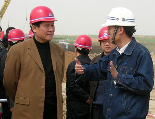 3月19日,武漢市長(zhǎng)李憲生(圖左一)率武漢市有關(guān)委辦局負(fù)責(zé)人及江岸、黃陂兩區(qū)分管區(qū)長(zhǎng)一行,到一公司承建的武湖特大橋施工現(xiàn)場(chǎng)視察。