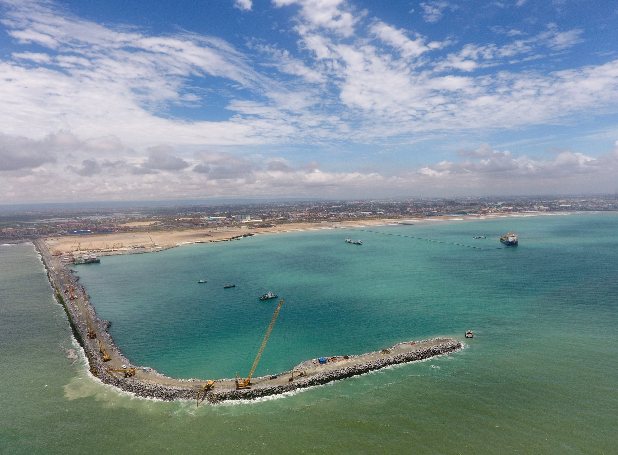 加納特碼新集裝箱碼頭工程項(xiàng)目是加納特碼港的擴(kuò)建項(xiàng)目,該項(xiàng)目主要是建造一條3558米的防波堤以及4個(gè)總長(zhǎng)為1400米的深水碼頭泊位,以容納先進(jìn)的港口裝卸設(shè)備和大型船舶,建成后旨在未來(lái)一百年內(nèi)提供世界級(jí)的港口基礎(chǔ)設(shè)施和服務(wù),成為西部非洲重要的貨運(yùn)樞紐。