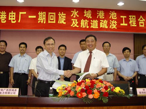 三公司參加建設(shè)防城港電廠,繼吹砂填海工程和煤碼頭工程之后,又承接了"一期回旋水域港池及航道疏浚工程"。