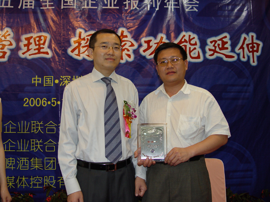 5月15日,第五屆全國企業(yè)報刊年會在深圳召開,中國企業(yè)聯(lián)合會聯(lián)合北京大學(xué)、中國人民大學(xué)舉辦的"第五屆全國企業(yè)報刊優(yōu)秀獎(集體)評選活動揭曉,我局《華南港工報》榮獲2005--2006年度全國企業(yè)報刊優(yōu)秀獎集體一等獎、四航局網(wǎng)站、四航文化網(wǎng)分別榮獲2005--2006年度全國企業(yè)優(yōu)秀網(wǎng)站將。企業(yè)文化部副主任、《華南港工報》主編鄭祖平代表我局領(lǐng)獎。