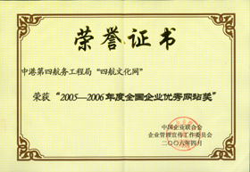 四航文化網(wǎng)獲2005--2006年度全國企業(yè)優(yōu)秀網(wǎng)站獎