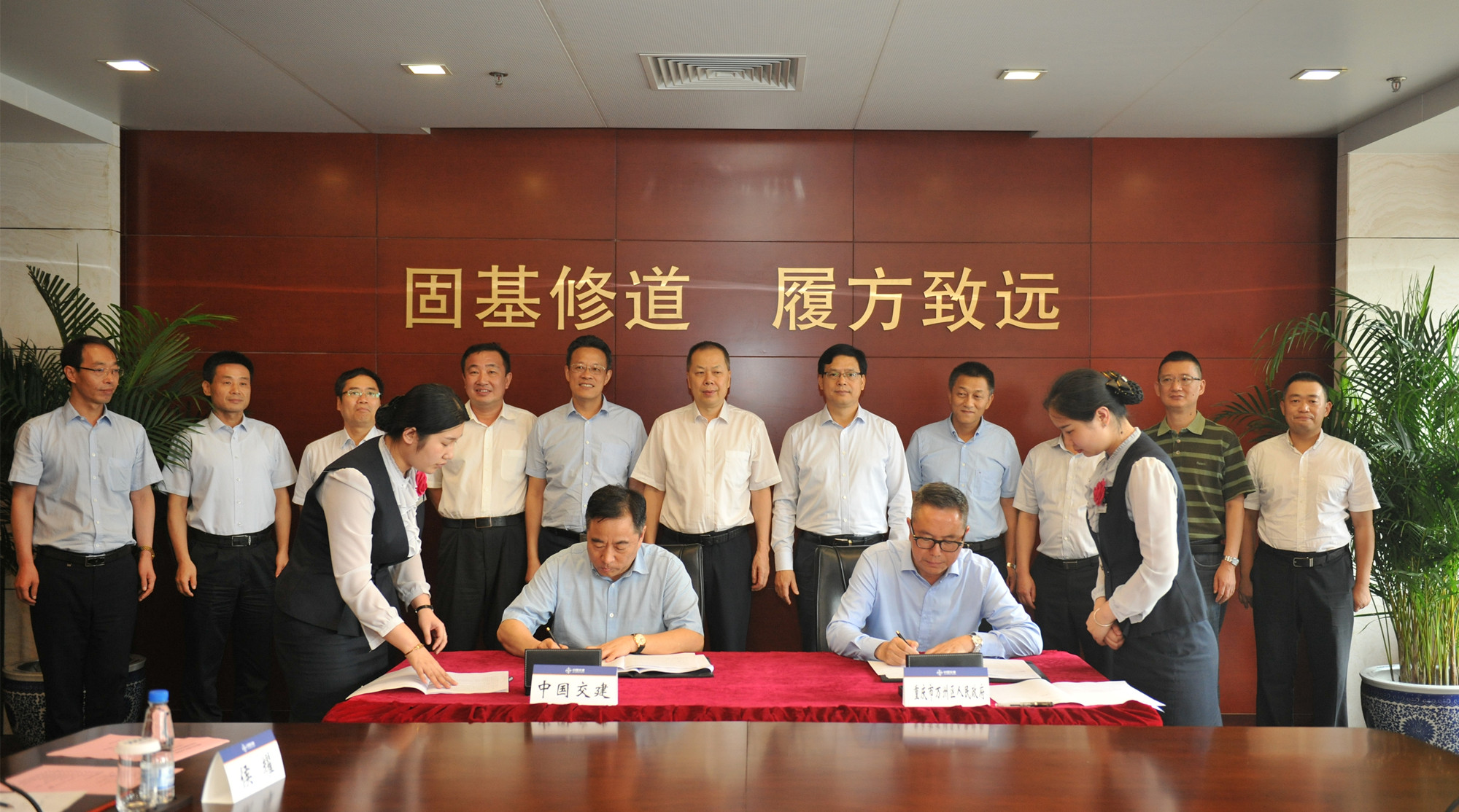 6月26日,中國(guó)交建與重慶市萬州區(qū)簽訂了戰(zhàn)略合作協(xié)議,中國(guó)交建總裁陳奮健、副總裁宋海良、總經(jīng)濟(jì)師趙喜安,重慶市委常委、萬州區(qū)委書記莫恭明,萬州區(qū)長(zhǎng)白文農(nóng),四航局董事長(zhǎng)、黨委書記梁卓仁,副總經(jīng)理、總法律顧問萬軍杰出席簽約儀式。
