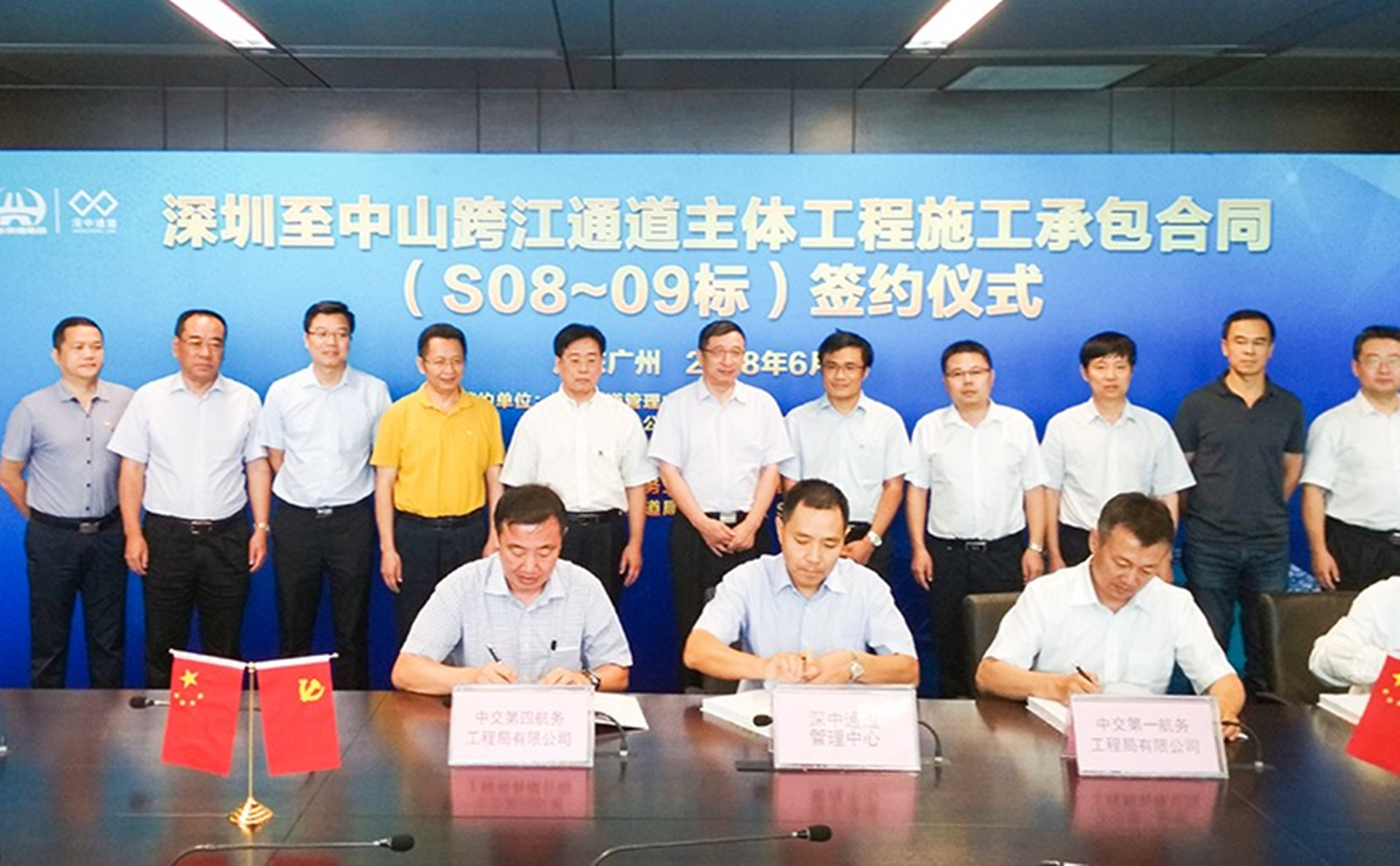6月28日,深圳至中山跨江通道主體工程施工承包合同S08—09標(biāo)簽約儀式在廣州舉行,四航局董事長、黨委書記梁卓仁,廣東交通集團(tuán)董事長鄧小華,深中通道管理中心主任陳偉樂出席儀式。