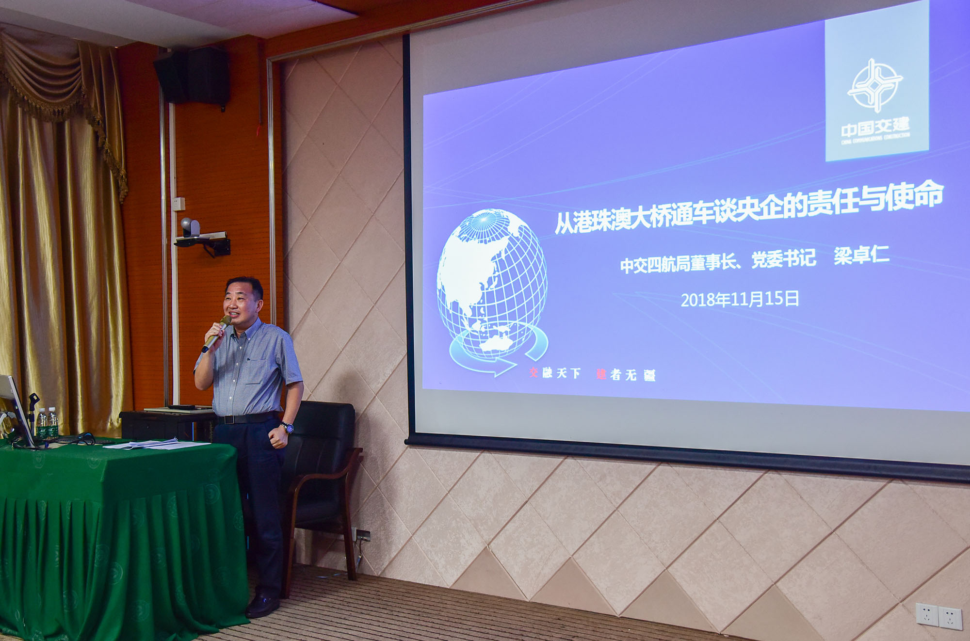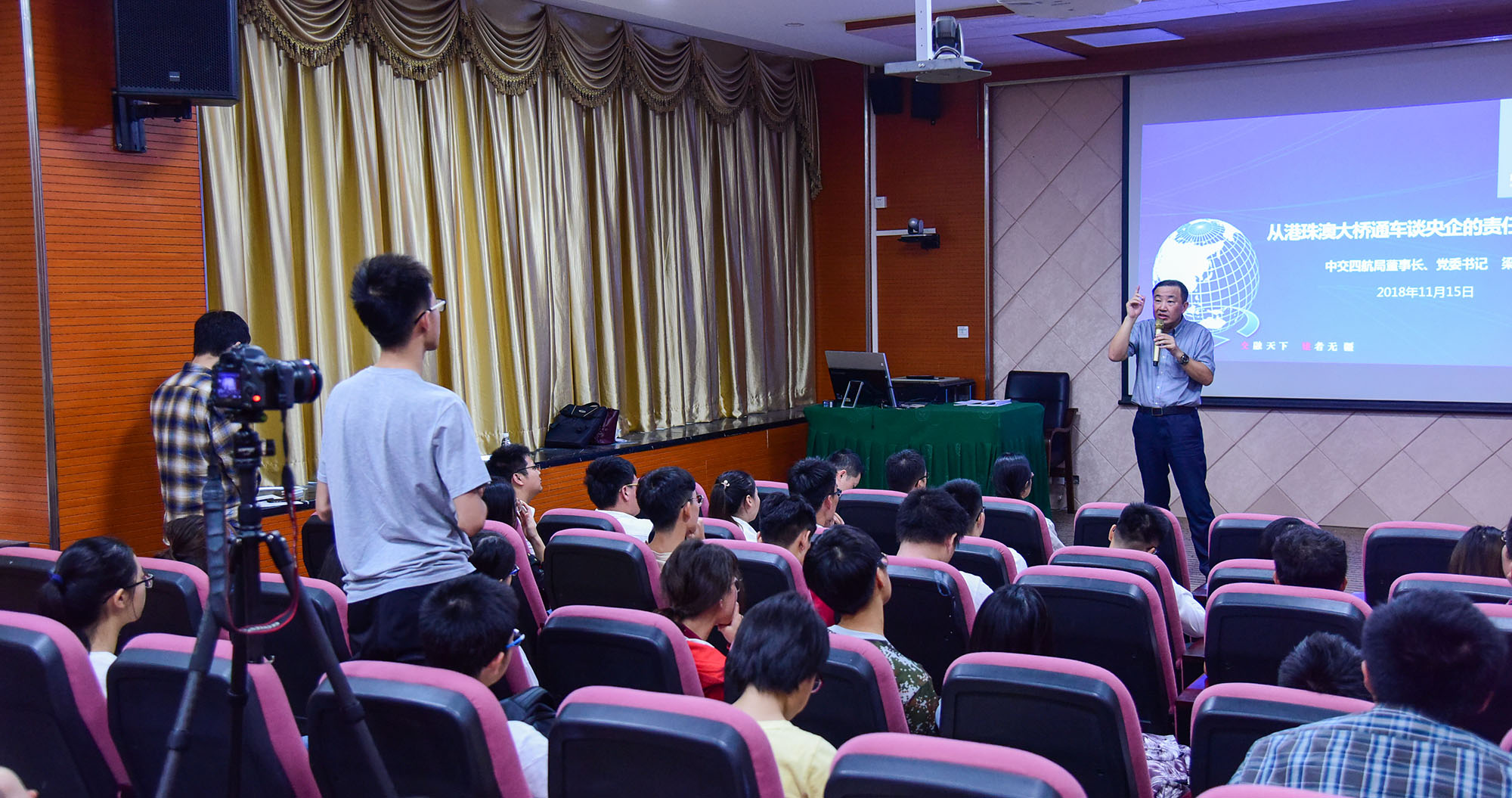 11月15日,四航局董事長(zhǎng)、黨委書記梁卓仁應(yīng)邀到中山大學(xué)海洋工程與技術(shù)學(xué)院專家講堂,作了題為《從港珠澳大橋通車談央企的責(zé)任與使命》專題講座。中山大學(xué)海洋工程與技術(shù)學(xué)院副院長(zhǎng)楊清書及過百名師生參加了此次講座。