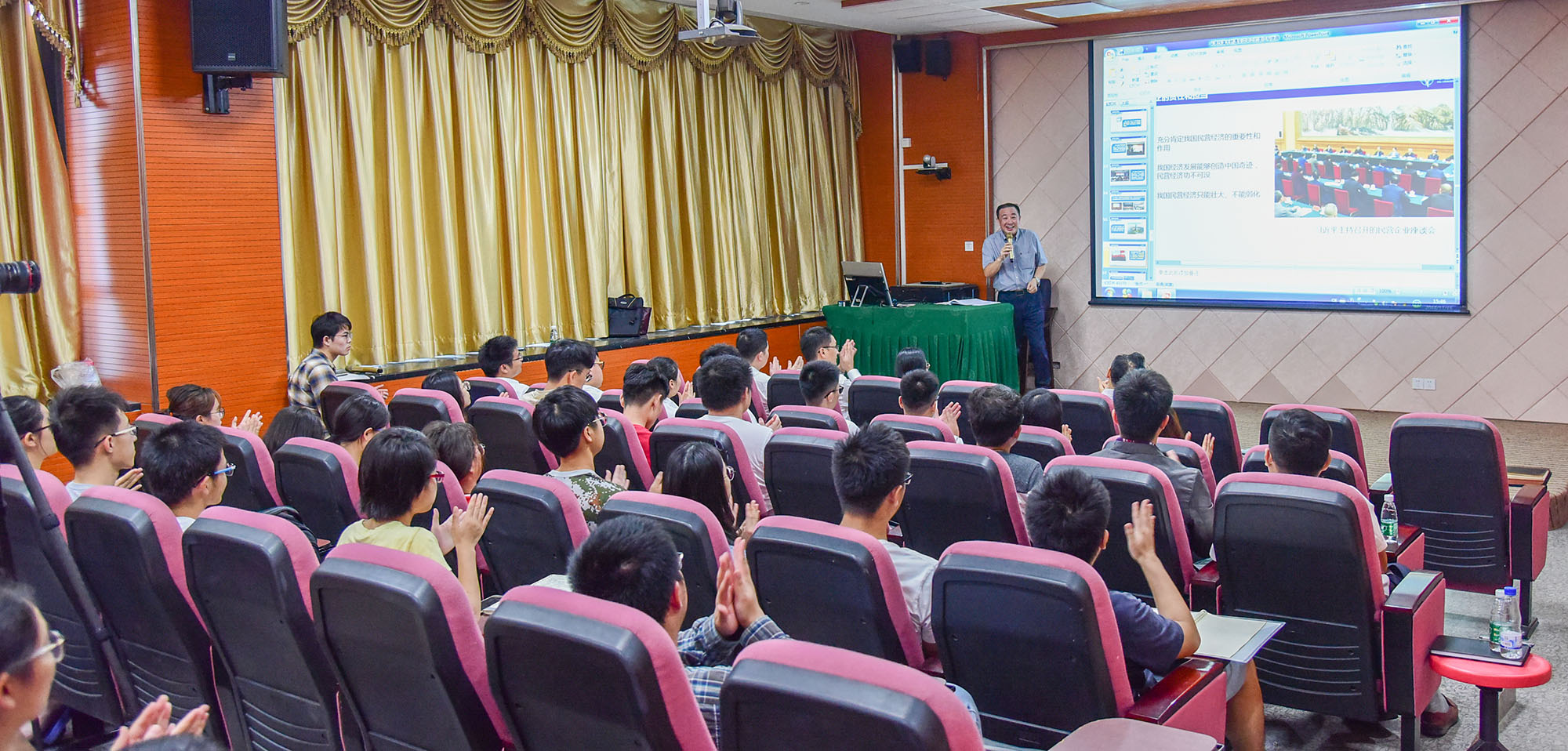 梁卓仁和張寶蘭還與在場(chǎng)師生進(jìn)行了精彩的交流互動(dòng),講座多次響起持久而熱烈的掌聲。