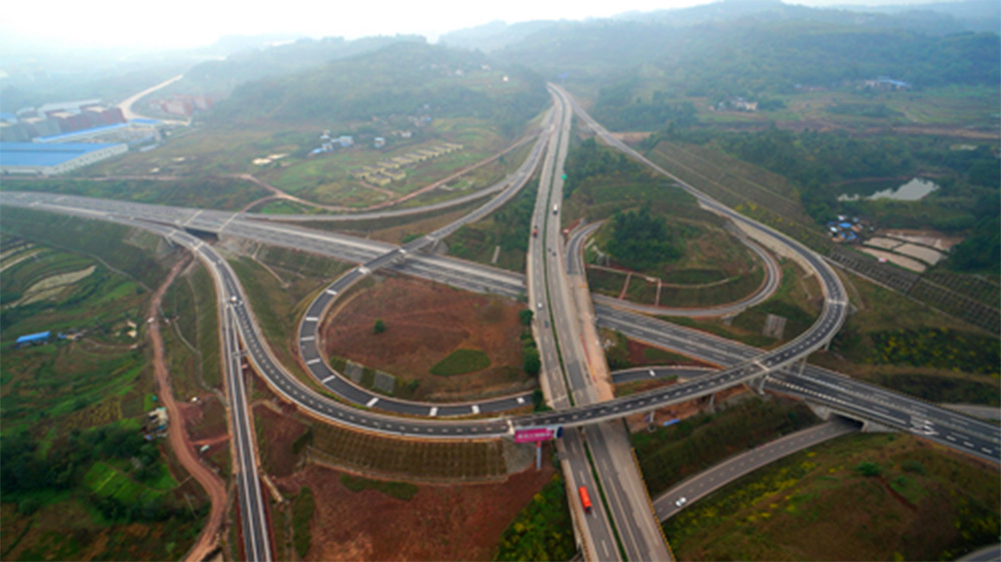 該工程線路西起銅梁城北二龍碑附近,東止渝武高速公路合川南沙溪廟互通,是連接渝遂、渝武高速公路的重要通道,全長29.34千米,大中橋梁25座,涵洞、通道130座,設(shè)5處互通式立交、1處服務(wù)區(qū)、 3處收費站。
