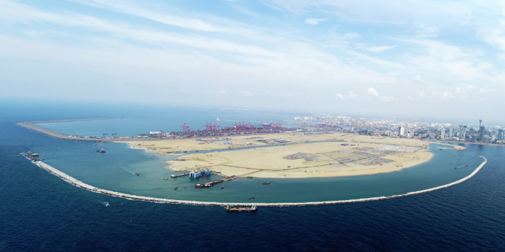科倫坡港口城項(xiàng)目防波堤全面出水施工完成