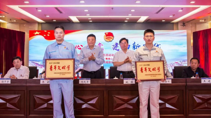 劉起濤與姚煥一同為獲得“中國青年五四獎章集體”榮譽的四航局港珠澳大橋島隧工程項目部等集體頒發(fā)了“中國交建青年文明號”榮譽。