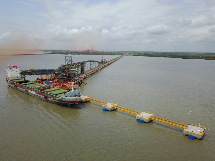 近日,由中國港灣總承包,四航局負(fù)責(zé)設(shè)計(jì)管理、采購、施工的幾內(nèi)亞鋁礬土出口項(xiàng)目(海工結(jié)構(gòu))工程項(xiàng)目碼頭迎來“MEDEMBORG”散貨船靠泊并開始裝載鋁土礦,標(biāo)志著該項(xiàng)目全面完工并投入試運(yùn)行。