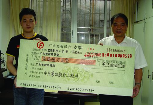 受今年1號強臺風"珍珠"和4號臺風"碧利斯"帶來特大暴雨的影響,廣東省64個縣(市、區(qū))遭受嚴重的洪澇災害,災區(qū)群眾生產、生活面臨極大困難。四航人心系災區(qū),慷慨解囊,以實際行動弘揚中華民族樂善好施的傳統(tǒng)美德,為構建和諧廣東奉獻愛心,幫助災區(qū)人民重建家園。7月26日,局工會將全局員工的20多萬元捐款分別送交廣東省慈善總會和捐贈給湛江市。