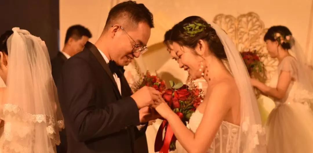 集體婚禮期間,梁卓仁、李惠明、陳輝、彭放、曾瑞雄和費永忠一同給新人們送上結(jié)婚禮物——對戒,祝福他們情比金堅、矢志不移。