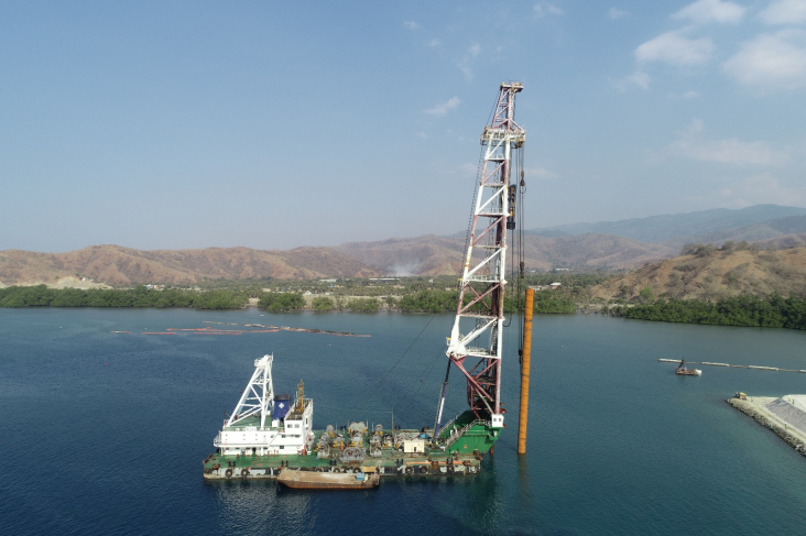 四航局東帝汶帝巴灣碼頭項(xiàng)目鋼管樁首樁試驗(yàn)順利完成