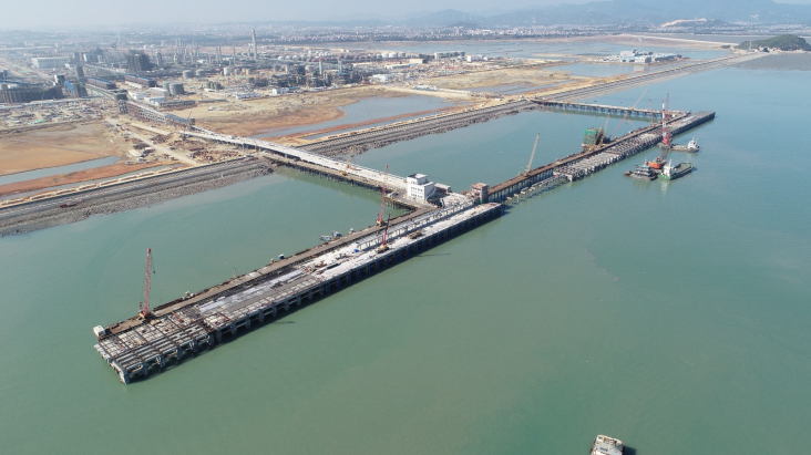 四航局中化泉州乙烯項目位于福建省湄洲灣港斗尾港區(qū)外走馬埭作業(yè)區(qū),主要建設(shè)3個5000噸級化學(xué)品液體散貨泊位和2個5000噸級通用泊位,項目建成后將為乙烯及煉油改擴建項目提供急需和便捷的原料產(chǎn)品水路運輸大通道,對乙烯項目乃至泉惠工業(yè)園區(qū)邁向世界一流煉化一體化園區(qū)具有重要意義。
