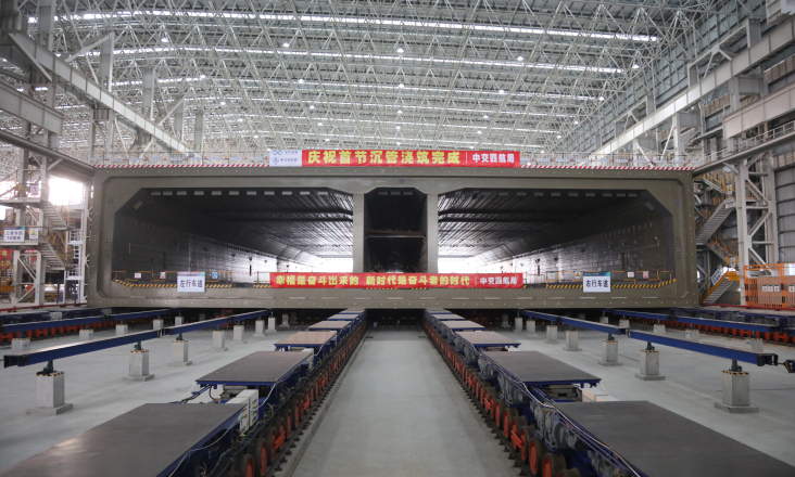 深中通道完成首個鋼殼沉管澆筑