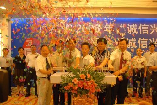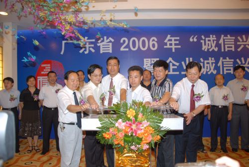 9月5日上午,廣東省2006年"誠信興商宣傳月"活動(dòng)開幕式暨企業(yè)"誠信興商"簽約儀式在廣州隆重舉行。省整規(guī)辦、省委宣傳部、省經(jīng)貿(mào)委等 15 個(gè)單位的領(lǐng)導(dǎo)和50家企業(yè)代表、新聞媒體代表約 200 人參加了有關(guān)活動(dòng)。廣東省 2006 年"誠信興商宣傳月"活動(dòng)組委會(huì)主任、省整規(guī)辦主任劉曉捷出席開幕式并致辭。我局黨委副書記阮祥發(fā)應(yīng)邀出席啟動(dòng)儀式,并簽署了《"誠信興商"公約》責(zé)任書,標(biāo)志著我局2006年"誠信興商宣傳月"活動(dòng)正式開始。