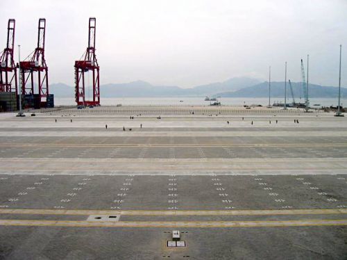 該工程包括道路、堆場、主變電所、維修車間等,總面積28萬平方米。堆場鋪面結(jié)構(gòu)分砼面層、聯(lián)鎖塊鋪面兩種,其中聯(lián)鎖塊鋪面16.7萬平方米,聯(lián)鎖塊強(qiáng)度等級為C60,工程質(zhì)量目標(biāo)為創(chuàng)國家級優(yōu)質(zhì)工程。
